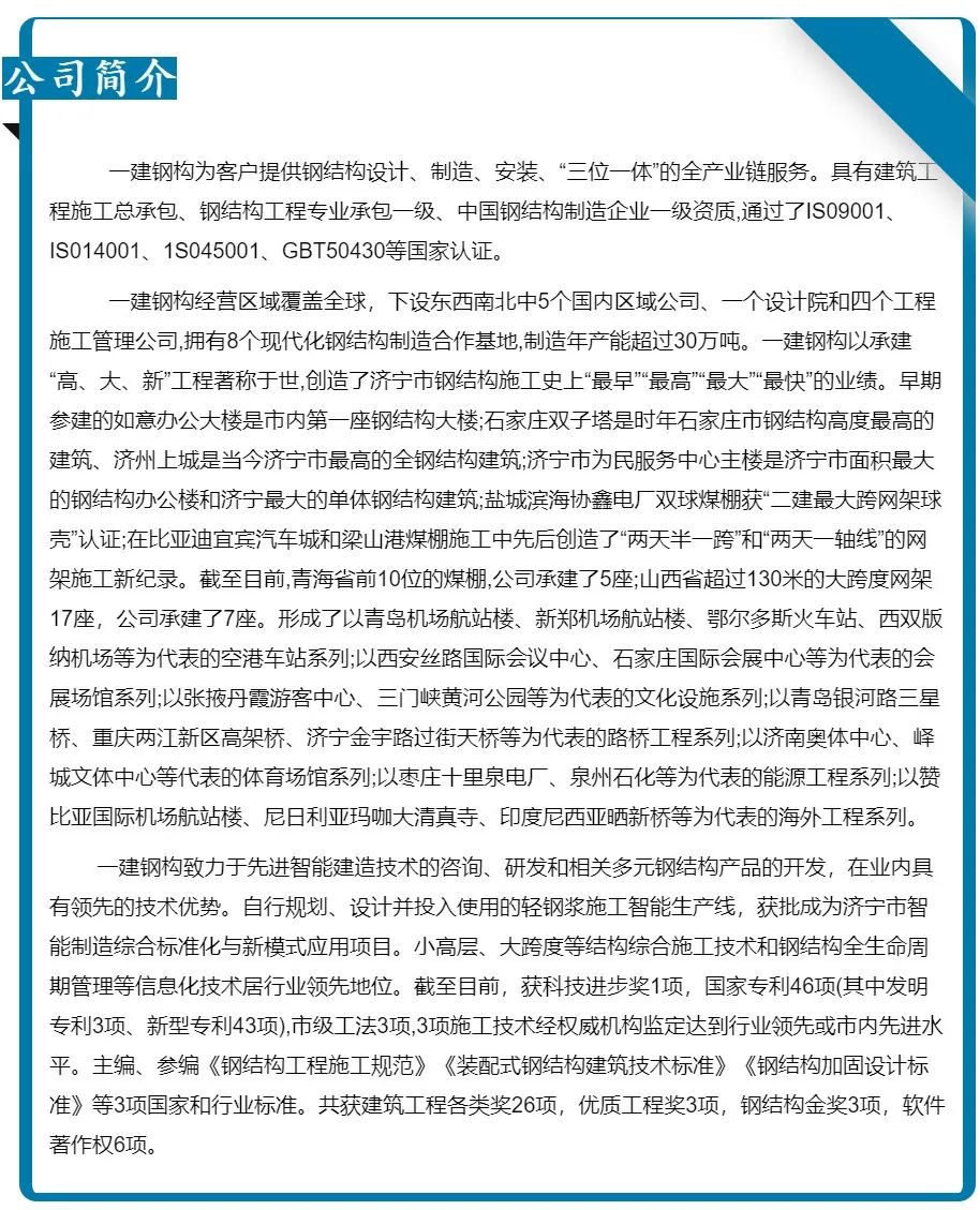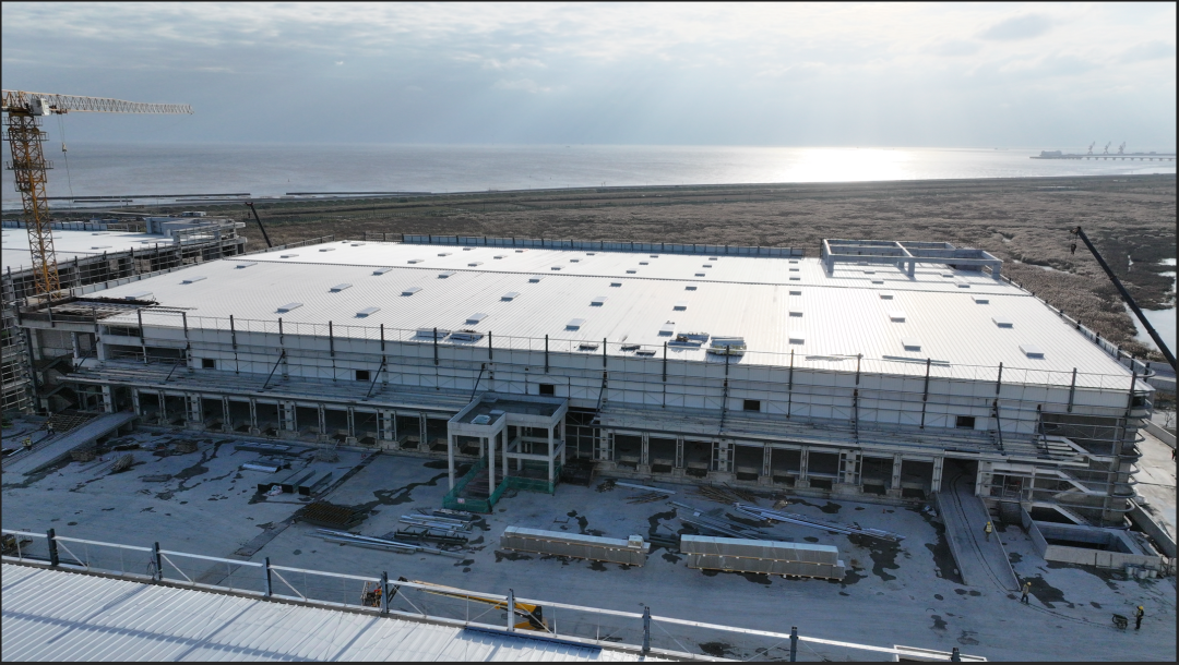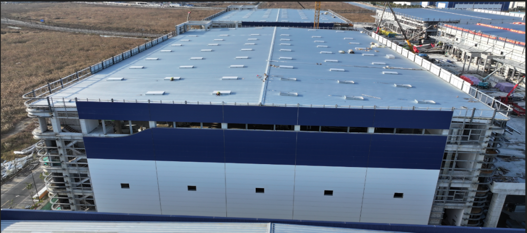 濟寧一建鋼結(jié)構(gòu)工程有限公司承建的金屬屋面及維護工程,涉及1#-4#物流倉庫、高架立體庫。倉庫跨度80米,屋面標高34.1米,為雙向找坡結(jié)構(gòu)。該項目建設規(guī)模大、工期緊、技術精度要求高、工況復雜,自項目開始施工。公司對現(xiàn)場管理嚴格要求,積極配合業(yè)主及總包的整體調(diào)配,施工嚴格執(zhí)行施工方案,遵循規(guī)范標準,合理安排人、機、料等,戮力同心將馬士基臨港旗艦倉項目打造成精 品工程、優(yōu) 質(zhì)工程。